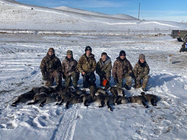 We start our Goose hunts at the break of daylight. We have goose pits that hold 8-10 hunters along with one guide. We typically set up decoys around the goose pit and use flags and calls to try to lure geese in range. There is no need to bring your own calls, as our guides will have and use them.